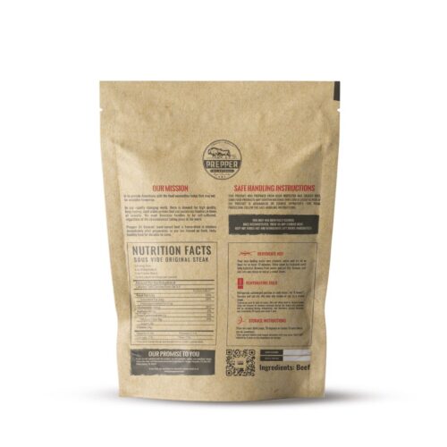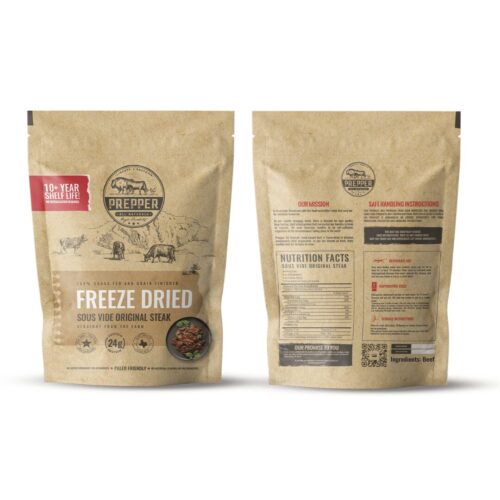 Our long-term storage solution involves starting with 48 ounces of top-notch beef, cubed and cooked sous vide, before undergoing freeze-drying. This process ensures extended shelf life, exceptional flavor preservation, and nutritional integrity.