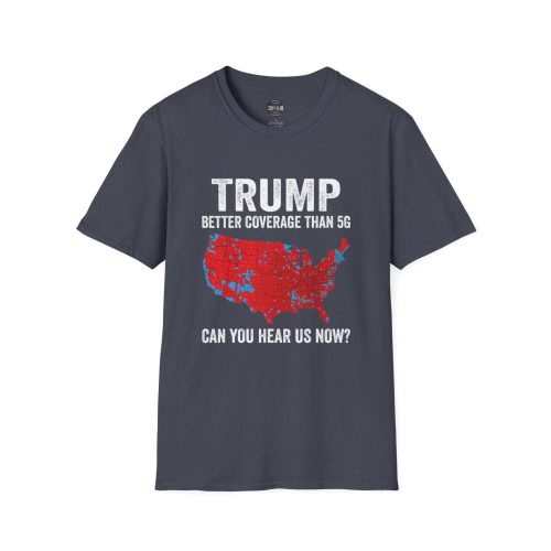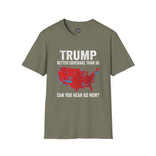 Show your patriotic pride with a touch of humor in our “Trump Better Coverage Than 5G” shirt! Featuring a bold, eye-catching design with a U.S. map in red and blue and the statement “Can You Hear Us Now?”, this tee is perfect for Trump supporters, conservative fans, and anyone who loves political humor. Wear it proudly at rallies, gatherings, or casual outings to make a statement and spark conversations!